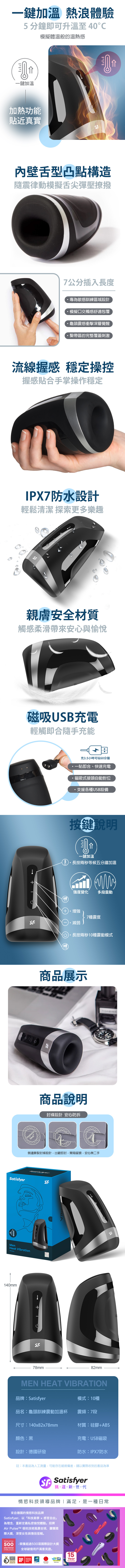 型號:Satisfyer|Men Heat Vibration|電動溫熱震動飛機杯